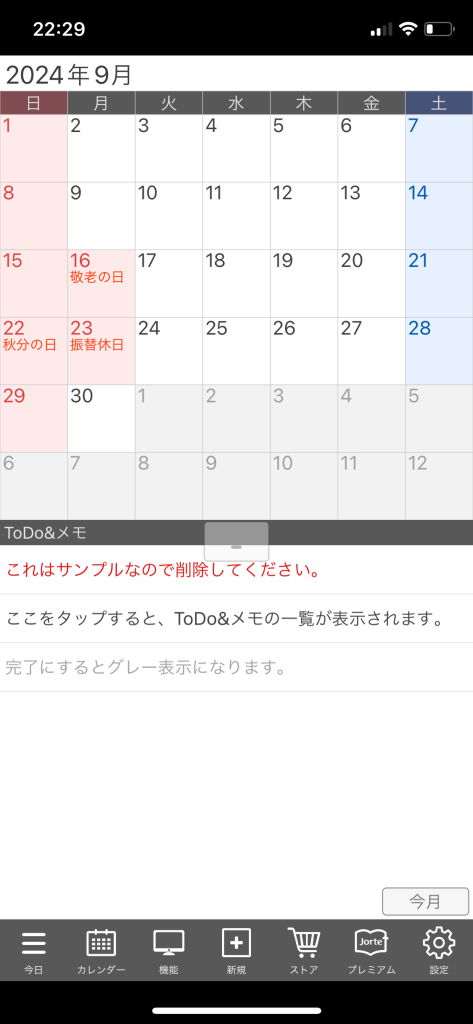 機能としては、ToDoリスト作成日記機能週初めの曜日の設定日本の祝日・海外の祝日表示も可能ですので、まさに手帳と同じような使い方ができます!