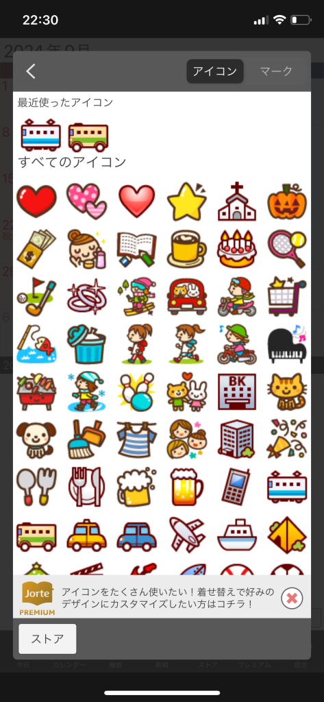 予定ごとにアイコンもつけられるのでわかりやすいですね。